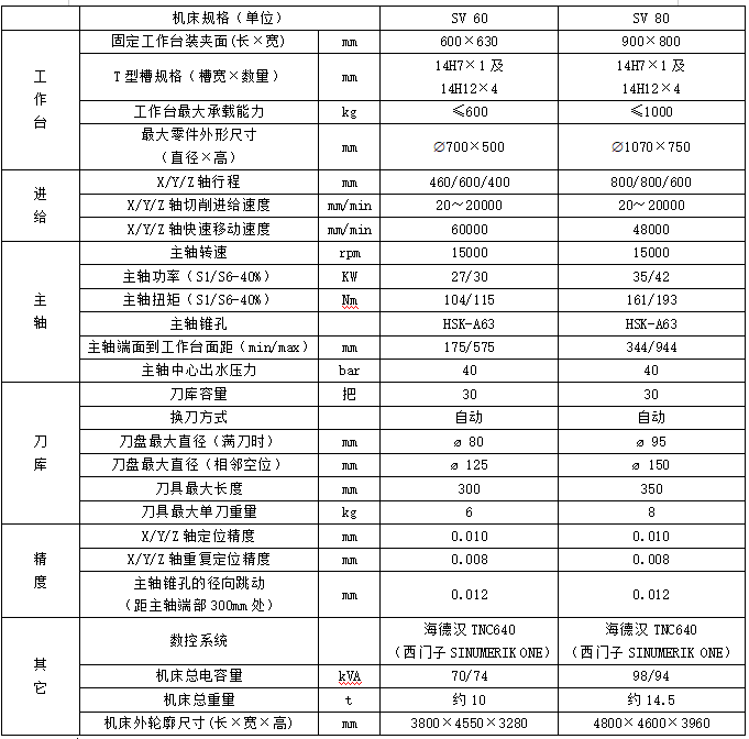 SV系列立式加工中心,标准配置海德汉系统。本机床具有定位精度高、响应速度快、可实现三轴加工等特点,同时还具备自动换刀以及零件、刀具自动测量功能。可以实现高效,自动化的加工。